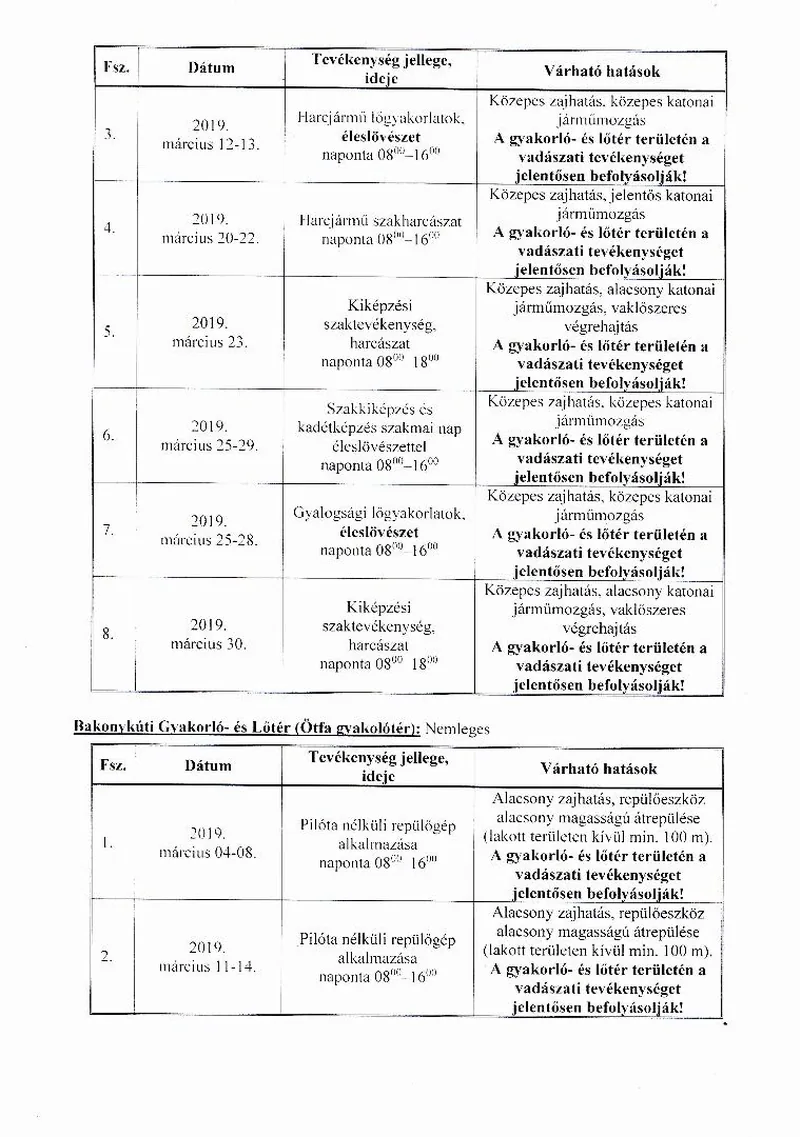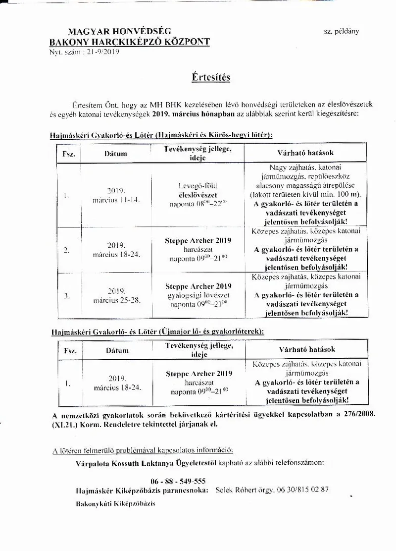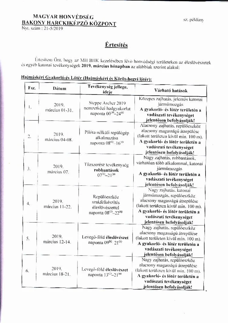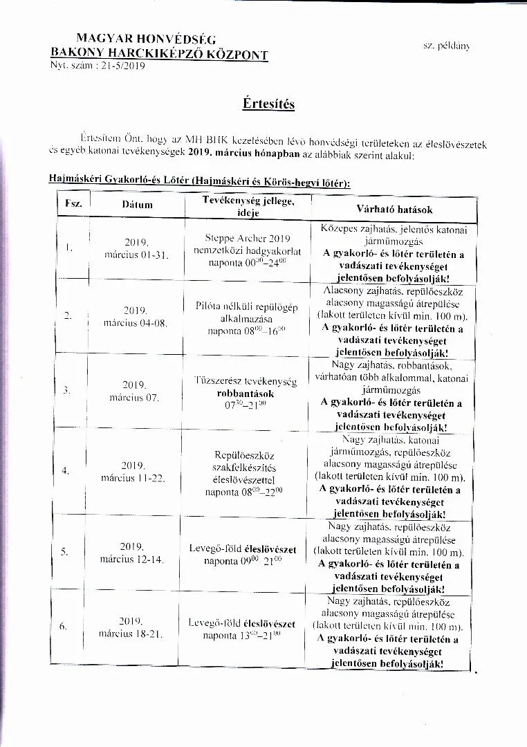 Lőtérértesítő Közszolgálati hír a MH Böszörményi Géza Csapatgyakorlótér Parancsnokság kezelésében lévő honvédségi területeken.