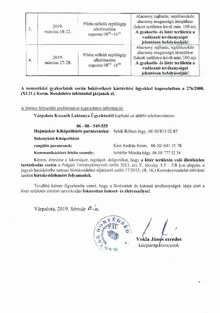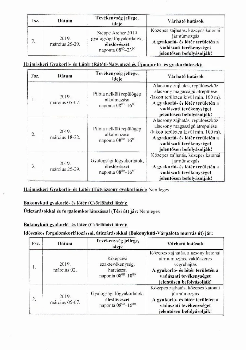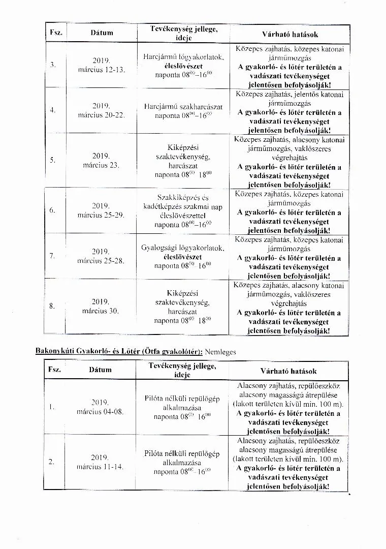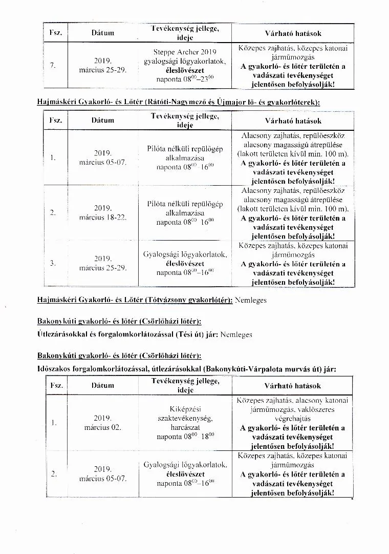 Lőtérértesítő Közszolgálati hír a MH Böszörményi Géza Csapatgyakorlótér Parancsnokság kezelésében lévő honvédségi területeken.