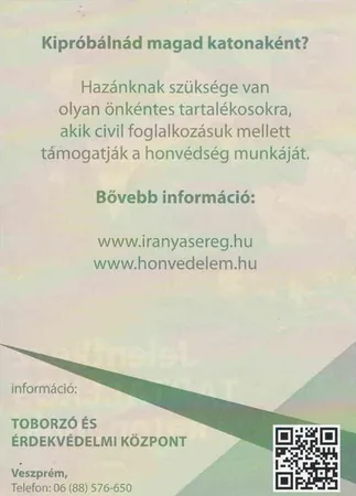 Bővebb információk a katonai szolgálatról http://iranyasereg.hu/ vagy www.hadkiegeszites.honvedelem.hu