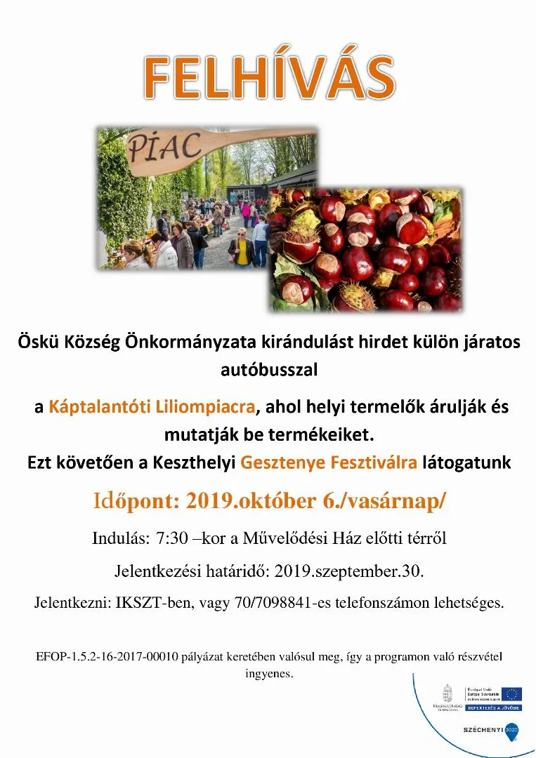 Indulás: 7:30 –kor a Művelődési Ház előtti térről