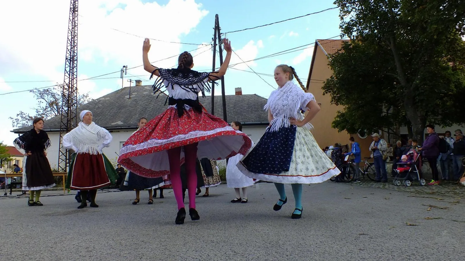 15:00 órától a művelődési ház előtti téren, Napsugár Óvoda műsora, Néptáncosok műsora, táncház, szőlődarálás, mustkészítés, Fanyűvők népi játszóház, vásár.